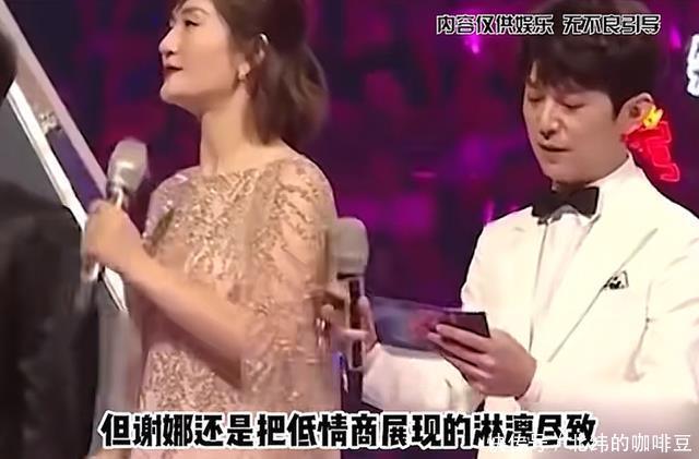 这种不得体的幽默不仅没有引发笑声,反而造成了全场尴尬。 2014年金鹰节,谢娜与央视名嘴康辉同台主持,这段合作更加明显地暴露了她与专业主持人之间的差距。
