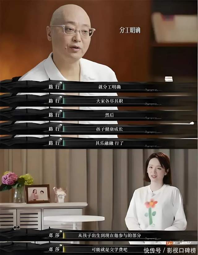 或许他清楚妈妈在竭尽全力让他的家庭完整,但小孩子敏感脆弱的内心让他很容易察觉到爸妈感情出现了裂痕。但他年龄太小,不懂得该怎么解决。其实丈夫路行一直都是比较自我的人格,不仅察觉不到邓莎在婚姻中的失望和无助,还抱怨她未能提供充足的情绪价值。邓莎在节目备采时表示,孕期孕检丈夫全程缺席,儿子年度体检或者家长会也多是她出现。在抚育孩子的过程中,路行相当随意。